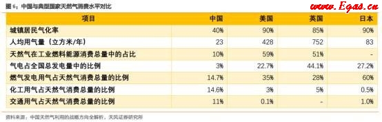 居民天然氣消費(fèi)擁有很大的潛力,因?yàn)槟壳爸挥行〔糠殖鞘芯用窨墒褂锰烊粴狻8鶕?jù)國家統(tǒng)計(jì)局?jǐn)?shù)據(jù),中國不到20%的人口可使用管道天然氣,而美國的這一數(shù)字達(dá)58%。隨著可支配收入和生活水平的提高,越來越多的居民出于便利性和清潔性而傾向于使用管道天然氣。