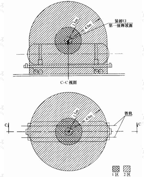 2 以裝卸口為中心,半徑為4.5m,1區(qū)以外以及地面以上的范圍內(nèi)劃分為2區(qū)。