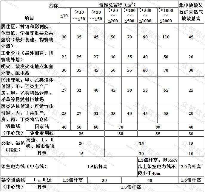 2 與本表以外的其它建、構(gòu)筑物的防火間距應(yīng)按現(xiàn)行的國(guó)家標(biāo)準(zhǔn)《建筑設(shè)計(jì)防火規(guī)范》GB 50016 執(zhí)行;