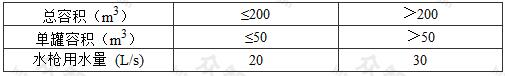 注:1 水槍用水量應(yīng)按本表總?cè)莘e和單罐容積較大者確定。
