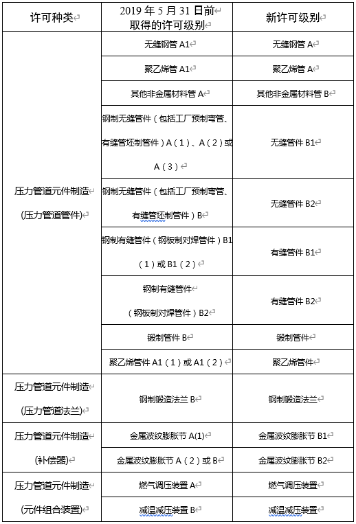 14.進(jìn)口壓力管道元件許可。根據(jù)前期試點情況,自2022年6月1日起,進(jìn)口壓力管道管子(A、B)、壓力管道閥門(A1、A2、B)的制造單位應(yīng)當(dāng)取得《中華人民共和國特種設(shè)備生產(chǎn)許可證》,并按相關(guān)安全技術(shù)規(guī)范要求通過型式試驗和制造監(jiān)督檢驗(或者進(jìn)口安全性能監(jiān)督檢驗),過渡期至2024年5月31日。
