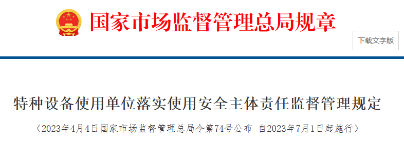 特種設(shè)備使用單位落實質(zhì)量安全主體責任監(jiān)督管理規(guī)定