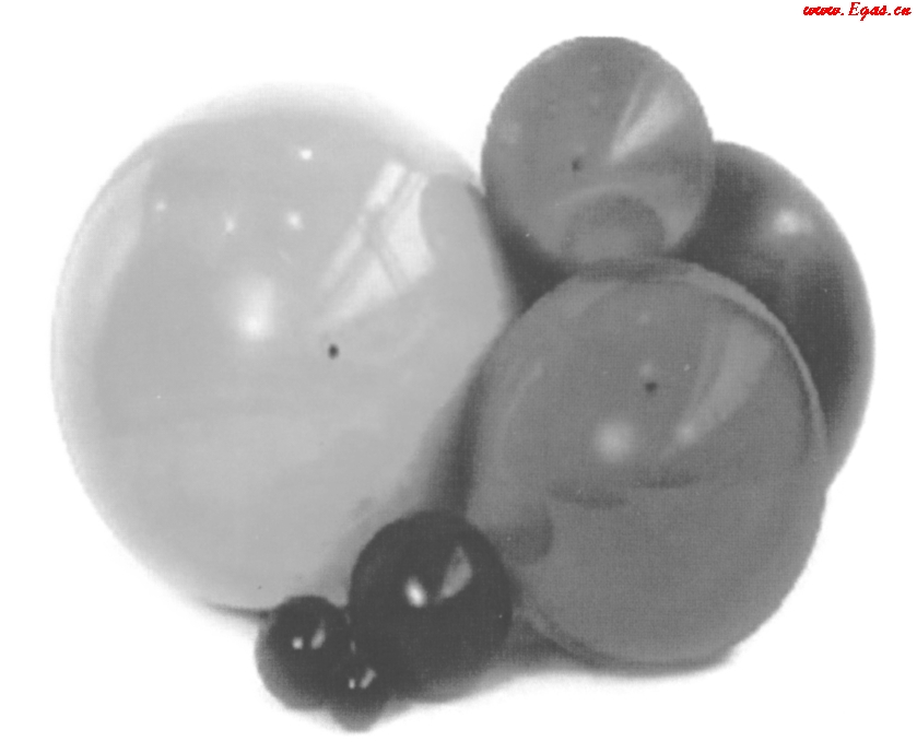 清管球由耐油橡膠制成,如圖12-1所示,有實(shí)心、空心充氣、空心注水三種形式。