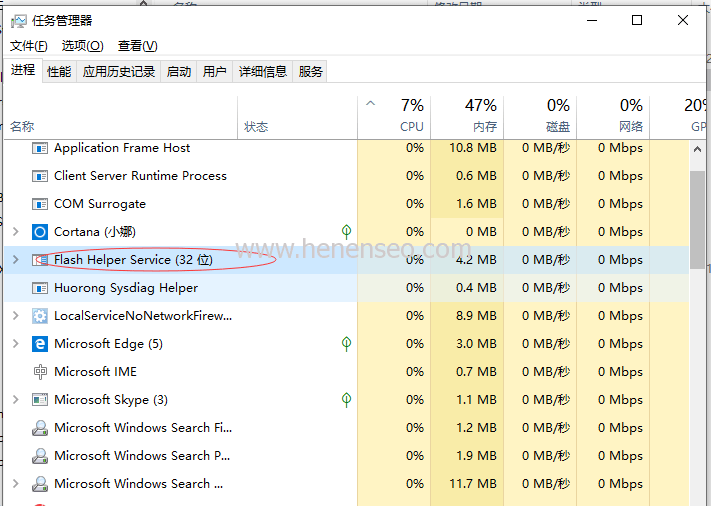 今天教大家直接刪除這個(gè)廣告。 等下次彈出來(lái)的時(shí)候,鍵盤快捷鍵Ctrl+Shift+Esc打開(kāi)任務(wù)欄管理器,找到FlashHelperService.exe這個(gè)進(jìn)程,右鍵結(jié)束進(jìn)程。
