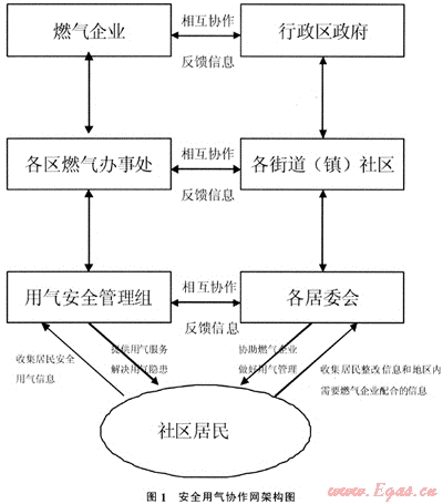 安全用氣協(xié)作網(wǎng)的主體是燃?xì)馄髽I(yè)的安全用氣管理網(wǎng)絡(luò)和社區(qū)的綜合治理管理網(wǎng)絡(luò)。建立協(xié)作網(wǎng)的目的是要充分利用社區(qū)的地利優(yōu)勢(shì)和燃?xì)馄髽I(yè)的專業(yè)優(yōu)勢(shì),雙管齊下,最大程度地提高居民安全用氣意識(shí)和降低用氣事故發(fā)生率。安全用氣協(xié)作網(wǎng)建成后,燃?xì)馄髽I(yè)的專業(yè)安全用氣管理人員將與社區(qū)干部建立長(zhǎng)久的協(xié)作關(guān)系,通過(guò)社企雙方齊抓共管,在社區(qū)原有的安全防范管理網(wǎng)絡(luò)的基礎(chǔ)上,逐步形成包含安全用氣管理內(nèi)容在內(nèi)的安全網(wǎng)絡(luò)化管理新模式。