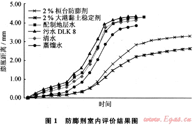 收集到6個(gè)廠家18種黏土穩(wěn)定劑,依據(jù)SY5971-94標(biāo)準(zhǔn)《注水用黏土穩(wěn)定劑性能評(píng)價(jià)方法》中的離心防膨法,先用膨潤土對(duì)這些聚合物類黏土穩(wěn)定劑進(jìn)行了初步篩選,然后用雅克拉凝析氣田的天然巖心粉進(jìn)行復(fù)核評(píng)價(jià),最后用頁巖膨脹儀測(cè)定了黏土穩(wěn)定劑對(duì)雅克拉凝析氣田天然巖心粉的防膨率,結(jié)果見圖1。
