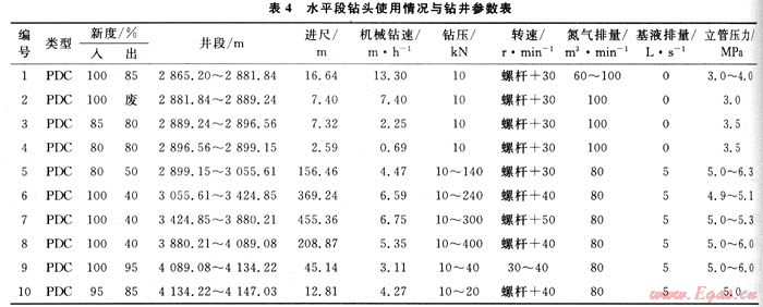 2) 在氮氣泡沫鉆井中,單只鉆頭進尺為455.36m,平均機械鉆速為6.75m/h,創(chuàng)該地區(qū)單鉆頭水平段進尺的紀錄。