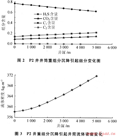 表1 P2井井筒重組分沉降模擬計(jì)算結(jié)果表(假定井口壓力35MPa)