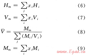 Hi及Vi均通過狀態(tài)方程求取,Hi的計(jì)算還要對熱容(Cpi)進(jìn)行估計(jì)。