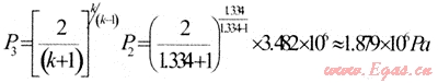 即P3=Pc=P2×CPR=3482000×0.5397≈1879243Pa