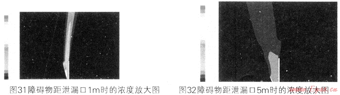 障礙物高度:為20m,距離泄漏口1m、5m時白勺天然氣噴射情況如下圖。