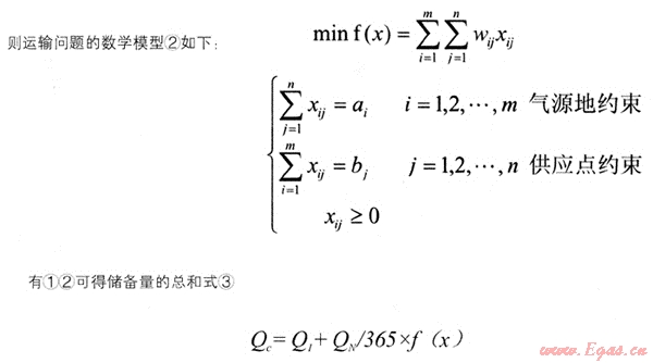 其次,確定上游氣源到目的地的最小運(yùn)輸耗時(shí)。由于長(zhǎng)輸管道因某種外部因素(地震,泥石流等)破壞導(dǎo)致無(wú)法輸配燃?xì)?,必須依靠其他途徑運(yùn)輸至城市內(nèi)部(水運(yùn),陸運(yùn)等)??梢酝ㄟ^(guò)建立線性規(guī)劃方程算出在滿足供氣量等于用氣量的情況下,從各氣源地運(yùn)輸至城市供應(yīng)點(diǎn)的最少必要時(shí)間。