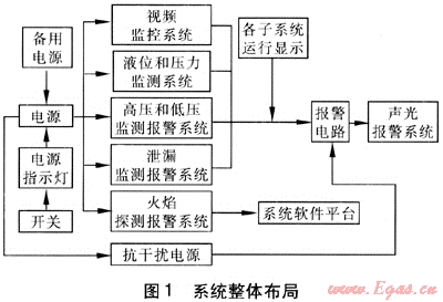 各子系統(tǒng)分布情況:在加氣站進(jìn)出口、儲(chǔ)氣區(qū)域、壓縮機(jī)區(qū)域及加氣區(qū)域安裝視頻監(jiān)控系統(tǒng),在氣體燃料儲(chǔ)存容器安裝液位和壓力監(jiān)測(cè)系統(tǒng),在壓縮機(jī)進(jìn)、出口安裝高壓和低壓監(jiān)測(cè)報(bào)警系統(tǒng),在儲(chǔ)氣區(qū)域、壓縮機(jī)區(qū)域及加氣區(qū)域安裝可燃?xì)怏w泄漏監(jiān)測(cè)報(bào)警系統(tǒng),在儲(chǔ)氣區(qū)域及加氣區(qū)域安裝火焰探測(cè)報(bào)警系統(tǒng)。