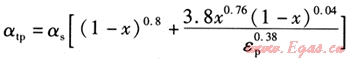 對(duì)于兩相流的管內(nèi)湍流換熱,αtp采用如下的關(guān)聯(lián)式表達(dá)[4]: