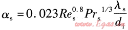 對(duì)于單相流(包括過(guò)熱氣態(tài)制冷劑、過(guò)冷液態(tài)制冷劑)管內(nèi)湍流換熱,αs采用迪圖司-貝爾特(Dittus-Boelter)關(guān)聯(lián)式表達(dá)[3]:
