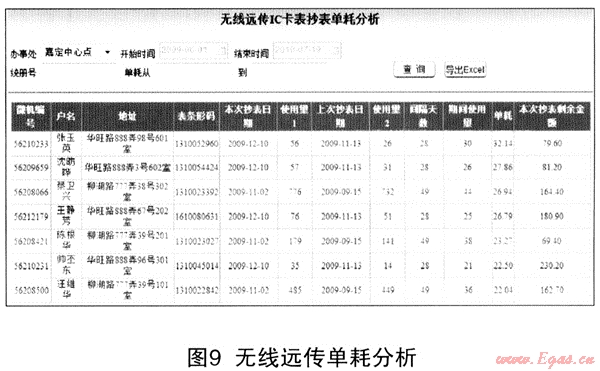 利用客戶編號將《客戶信息管理系統(tǒng)》中安檢摘錄數(shù)(機械、液晶余量)、定期采集到的無線遠傳數(shù)據(jù)與《IC卡燃氣表充值管理系統(tǒng)》內(nèi)充值數(shù)據(jù)進行比較,了解用戶表具閥門狀況、表具當(dāng)前單價、表具總金額(使用金額、剩余金額)、系統(tǒng)購買量等數(shù)據(jù),有效掌握表具的運行情況,及時發(fā)現(xiàn)表機械透支使用、表具使用總量超過購買量等異常情況,通過條件篩選列出異常用戶的列表,代替?zhèn)鹘y(tǒng)管理者人工逐戶比較費時費力的問題。同時能對無線遠傳表上的使用量及剩余量情況進行有效分析,為準確統(tǒng)計IC卡表區(qū)域產(chǎn)銷差與用氣單耗情況提供數(shù)據(jù)依據(jù)(見圖9)。