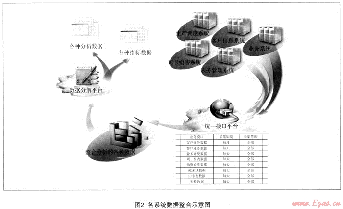 為了解決數(shù)據(jù)分散獨立的現(xiàn)狀,公司于2009年初正式啟動“GDIA系統(tǒng)項目”,旨在探究有效的技術(shù)方法和手段,在各系統(tǒng)間建立起數(shù)據(jù)紐帶與交互機制,將各個數(shù)據(jù)庫中公司關(guān)心卻沒能有效組織的數(shù)據(jù)信息整合展現(xiàn)到統(tǒng)一直觀的GDIA系統(tǒng)平臺中來,GDIA系統(tǒng)作為信息數(shù)據(jù)整合的試基石,在燃氣市北公司整個信息化進程中起著承前啟后的深遠作用。