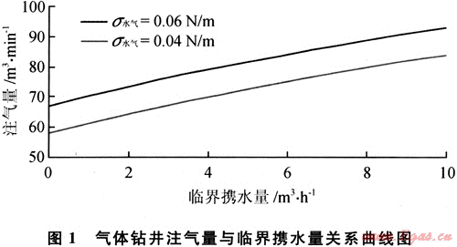 3) 增加注氣量和降低液氣表面張力,是提高氣體鉆井臨界攜水量的有效途徑;當(dāng)增加注氣量不能有效攜水時(shí),必須轉(zhuǎn)換鉆井方式,通過(guò)降低液氣表面張力來(lái)提高臨界攜水量。
