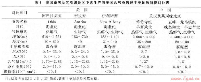 重慶及其周緣地區(qū)與美國(guó)東部頁(yè)巖氣產(chǎn)出地區(qū)(阿巴拉契亞、密執(zhí)安及伊利諾斯盆地等)具有諸多的地質(zhì)可比性(包括頁(yè)巖地質(zhì)時(shí)代、構(gòu)造變動(dòng)強(qiáng)度等)[11、23~24],均屬于早古生代海相沉積盆地并經(jīng)歷了多期復(fù)雜的構(gòu)造運(yùn)動(dòng),具備了富集頁(yè)巖氣的有利地質(zhì)條件。