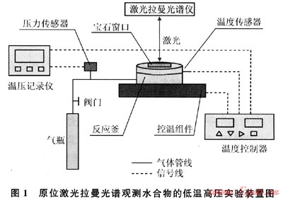 原位激光拉曼光譜觀測水合物的低溫高壓實驗裝置系青島海洋地質研究所水合物實驗室自主設計、研發(fā),圖1為裝置的示意圖。整套裝置主要包括供氣系統(tǒng)、反應釜、溫度控制系統(tǒng)、數據記錄儀、激光拉曼光譜儀等5個主要組成部分。裝置采用Pt1OOc精密溫度傳感器和半導體控溫,可控范圍-10~30℃,并能夠實現梯度控溫。