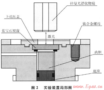 圖2為拉曼光譜原位觀測裝置的局部圖,拉曼光譜儀的激光透過藍寶石窗口聚焦在水合物表面,可得到水合物的拉曼光譜圖。反應釜分為上下兩個部分,兩部分的結合部借鑒了相機和鏡頭的卡口結構,便于開閉。釜體上部的壓蓋采用螺釘壓緊,螺釘、上端壓蓋、藍寶石視窗以及容器寶石密封端就成為一個整體。這一部分通過與一個帶有“O”形圈密封的容器底座結合,形成一個密封的壓力容器腔。腔體內部設有內膽,容積約1.1mL,用于裝填反應介質。