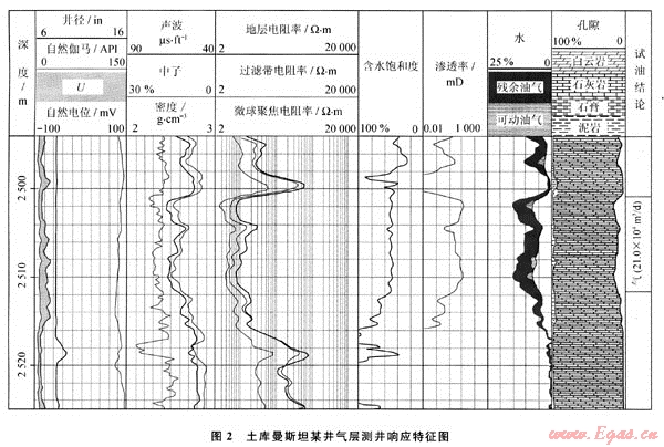 對(duì)于氣層識(shí)別來說,一個(gè)好的氣層,天然氣密度較大,使含氫指數(shù)、密度和聲波傳播速度都增高,故減少了幾種視孔隙度間的差異,從而可能將其誤判為含水層,甚至為水層。
