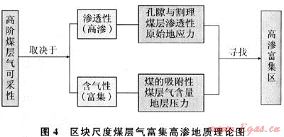 建立了沁水氣田煤層氣成藏模式,認(rèn)為本區(qū)煤層氣藏為受巖漿熱成因形成的承壓水封堵煤層氣藏,其富集程度主要受儲(chǔ)層條件和保存條件的影響;形成了區(qū)塊尺度煤層氣富集高滲地質(zhì)控制理論(圖4),認(rèn)為沁南煤層原生孔隙割理系統(tǒng)決定了煤層滲透性的大小,構(gòu)造背景和斷層發(fā)育程度明顯控制煤層含氣性;形成了5項(xiàng)配套工藝技術(shù),包括山地淺層二維地震采集和精細(xì)解釋、富集高滲區(qū)地質(zhì)預(yù)測(cè)與井位部署、羽狀水平井及配套工藝、適用性舉升工藝和智能排采控制。