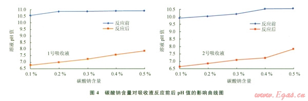 吸收液:水+4%膨潤(rùn)土,并用無(wú)水碳酸鈉與氫氧化鈉調(diào)節(jié)吸收液pH值,結(jié)果見圖6