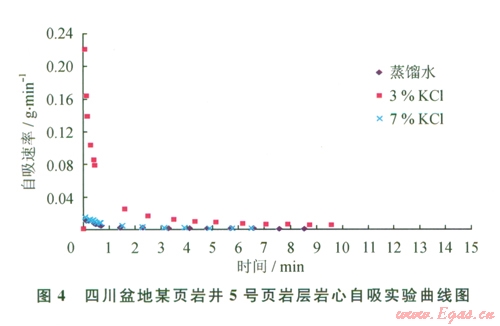 1)對(duì)于烴源頁(yè)巖而言,采用常規(guī)的測(cè)量滲透率變化來表征其膨脹及分散特征是不可行的,而自吸實(shí)驗(yàn)、吸水膨脹實(shí)驗(yàn)等可作為此類頁(yè)巖氣藏評(píng)價(jià)的有效方法。