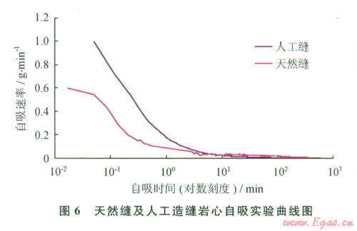 人工縫及天然縫的自吸速率對(duì)比見圖6。