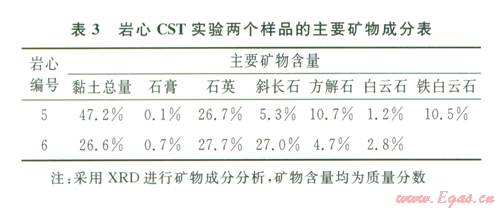 具備生、儲(chǔ)烴能力的頁(yè)巖必須通過大規(guī)模體積壓裂才能獲得工業(yè)開采價(jià)值。因此,上萬立方米的壓裂液使用量成為頁(yè)巖氣藏壓裂有別于常規(guī)氣藏壓裂的特點(diǎn)之一。與國(guó)外頁(yè)巖氣藏類似,在中國(guó)西南地區(qū)分布的四川盆地頁(yè)巖氣藏通常具有較高的黏土礦物含量。如某井含氣量最高的頁(yè)巖層段,其黏土礦物含量范圍在34.1%~45.9%之間,存在膨脹和分散的可能性。而頁(yè)巖所特有的致密、滲透率極低等特點(diǎn),往往使人們認(rèn)為外來液體幾乎沒有侵人頁(yè)巖的可能。同時(shí)頁(yè)巖所特有的致密特點(diǎn),使得在采用常規(guī)方法,希望通過滲透率的變化來定量描述黏土礦物膨脹、分散等特征對(duì)頁(yè)巖氣藏壓裂的影響時(shí),收效甚微。這樣的結(jié)果,也使得在進(jìn)行的頁(yè)巖氣藏壓裂設(shè)計(jì)、壓后評(píng)估中很少考慮頁(yè)巖中黏土礦物膨脹性和分散性特征產(chǎn)生的影響。