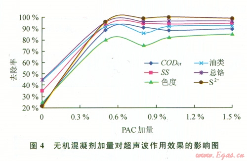 2.3.4 混凝劑PAC加量對超聲作用效果的影響