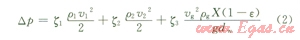 式中ζ1、ζ2、ζ3為進(jìn)出口及絲網(wǎng)處的局部阻力系數(shù);ν1、ν2、νg為進(jìn)出口及絲網(wǎng)處的氣體流速,ms;ρ1、ρ2、ρ3為進(jìn)出口及絲網(wǎng)處條件下的氣體密度,kgm3;X為絲網(wǎng)層厚度,m;ε為絲網(wǎng)空隙率。