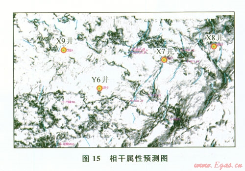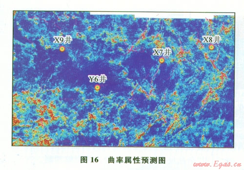 由于須三段儲層的重點勘探目標(biāo)“網(wǎng)狀裂縫”通常具有“雜亂反射”地震響應(yīng)特征,因此,可以利用多種反映地震子波橫向不穩(wěn)定性的地震屬性進(jìn)行裂縫預(yù)測(圖1516)。