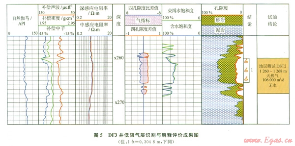 鶯歌盆地東方l-1氣田產(chǎn)層為埋深較淺的第四系下部和鶯歌海組中上部的地層。儲層巖性主要是一套由淺海、陸坡、盆地等較穩(wěn)定環(huán)境下沉積的細(xì)-極細(xì)的泥質(zhì)粉砂巖?,F(xiàn)有的生產(chǎn)資料證實(shí)該氣田大范圍的發(fā)育著低電阻率氣層,其電阻率值與鄰近的泥巖和水層(水層電阻率在0.9~1