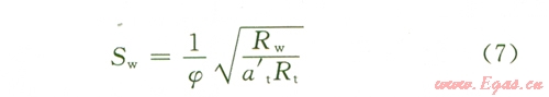 根據(jù)研究區(qū)低阻形成的機(jī)理可知,本區(qū)低阻氣層以細(xì)砂巖、粉細(xì)砂巖為主,顆粒細(xì)、排驅(qū)壓力大、束縛水飽和度較高;低阻氣層中的陽離子交換量很低,因而泥質(zhì)的附加導(dǎo)電性可以忽略。因此,對于這類高束縛水飽和度引起的低阻油氣藏可用以下模型計(jì)算含水飽和度: