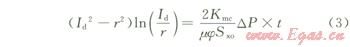 不難看出式(6)已經(jīng)消除了可變膠結(jié)指數(shù)的影響,進(jìn)一步證明了“當(dāng)其他條件不變時,鉆井液濾液侵入地層的深度主要受泥餅滲透率和地層的孔滲特性兩方面因素的控制,這點與非裂縫性砂泥巖地層比較類似”的觀點是經(jīng)得起推敲的。再將式(6)帶入式(3)可以得到: