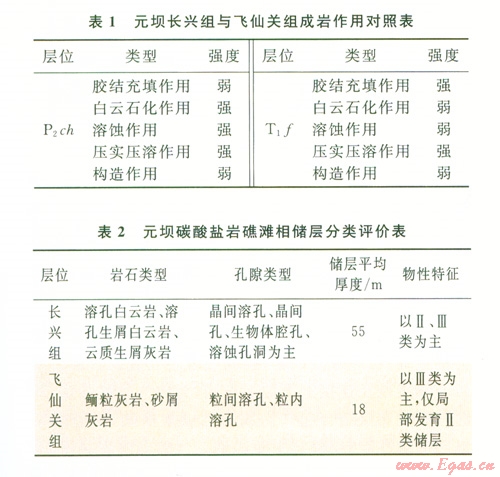 1)元壩地區(qū)嘉陵江組上部一雷口坡組膏鹽巖蓋層分布穩(wěn)定,長興組與飛仙關(guān)組氣藏氣源主要為吳家坪組(P2w)、龍?zhí)督M(P2w)烴源巖,儲(chǔ)層特征的差異導(dǎo)致了長興組主要為中高產(chǎn)天然氣藏,飛仙關(guān)組主要為低產(chǎn)氣藏。