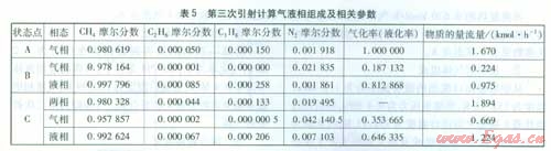 0.670 kmoL/h的氣相與原料氣組成混合氣體即為第三次引射的引射氣體,經(jīng)計(jì)算引射氣體組成及相關(guān)參數(shù)見(jiàn)表5狀態(tài)點(diǎn)A。
