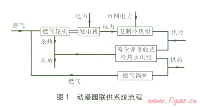 燃氣冷熱電聯供系統(以下簡稱聯供系統)是以天然氣為一次能源,產生電和可用冷熱能的能源系統[1]。利用燃氣輪機、內燃機等發(fā)電機組與溴化鋰吸收式冷熱水機組進行優(yōu)化組合,可實現終端能源的梯級利用和高效轉換,避免遠距離輸電損失,提高能源利用效率,降低能耗。[2-12]。