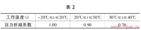 1.2.3 聚乙烯燃?xì)夤艿赖墓ぷ鳒囟瘸^(guò)20℃時(shí),還需要考慮管道燃?xì)馍邔?duì)于其自身承受能力的影響,也就是說(shuō),溫度的勝過(guò)對(duì)造成其允許的最大工作壓力值受到影響而降低,具體的降低系數(shù)如表2。