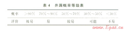 根據(jù)計算出的概率并參照表4,可以判斷發(fā)生井漏的程度。