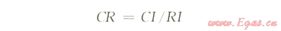 為評價排序的有效性,須對判斷矩陣的評定結(jié)果進(jìn)行一致性檢驗。Saaty T L提出隨機(jī)一致性比值概念,記為CR,當(dāng)CR0.1時,認(rèn)為滿足一致性;當(dāng)CR0.1時,則不滿足一致性條件,應(yīng)對判斷矩陣做適當(dāng)修正,直到取得權(quán)重滿足一致性條件為止。CR的計算公式為: