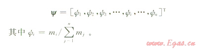 2)對向量M作歸一化處理,得相對權(quán)重向量: