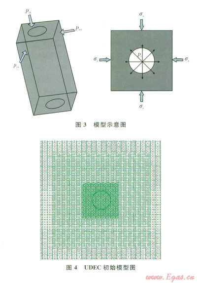 上述研究人員從各個方面對煤層井壁穩(wěn)定性分析,取得了一定研究價值。本項研究選取山西省沁水盆地樊莊3號煤層為例,該煤巖距地面深度700 m,設邊長為2 m的正方形作為研究對象,井眼尺寸為9 152.4 mm。運用UDEC離散元軟件考察煤層在低壓范圍內(nèi)井壁穩(wěn)定性,并建立判斷煤層井壁穩(wěn)定性的評價方法。