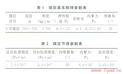 筆者選擇的研究對象為3號煤層,煤層的各種力學參數(shù)設置參照眾多研究成果,見表l、2。