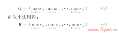 2)對矩陣R,確定出儲層單項指標(biāo)最佳值,即求出相應(yīng)向量G與B,由取大法則得: