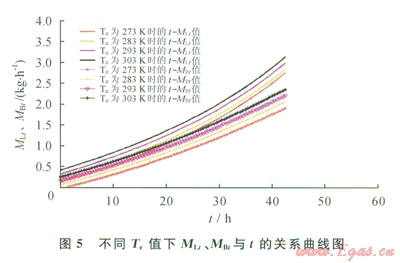 冷卻過程中時(shí)間(t)與儲(chǔ)罐溫度(Tt)的關(guān)系: