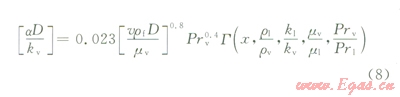 缺液區(qū)以液滴在氣體的彌狀流動為主。關于彌狀流的傳熱公式選擇下式[11]