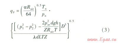 式中qv一—標準狀態(tài)下(壓力為101325Pa,溫度為288K)管道內(nèi)的流量,m3/s